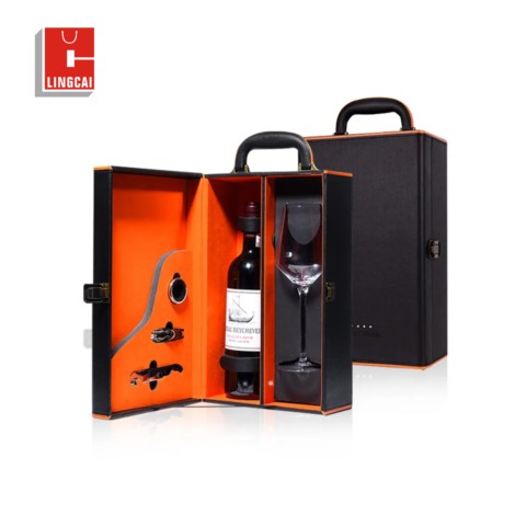 Conjunto de regalo de alta calidad con logotipo personalizado, caja de embalaje de botellas de vino de cuero portátil, de regalo